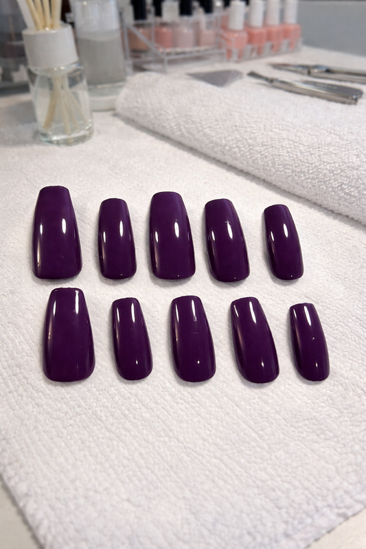 New! Kay Bei – Plum Velvet Coffin Press-On Nails