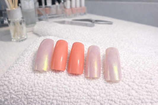 New! Kay Bei Peach Pearl Duo Coffin Press-On Nails