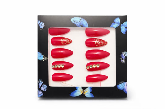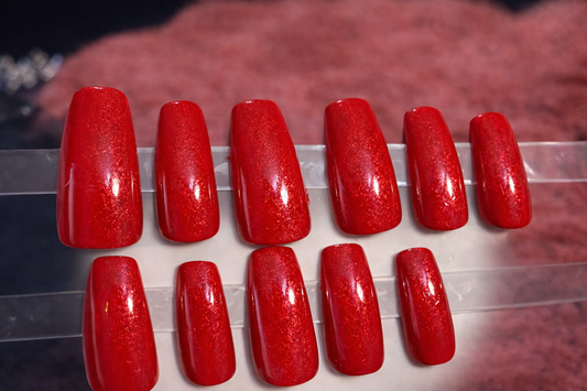 New! Kay Bei Ruby Allure – Red Glitter Coffin Press-On Nails