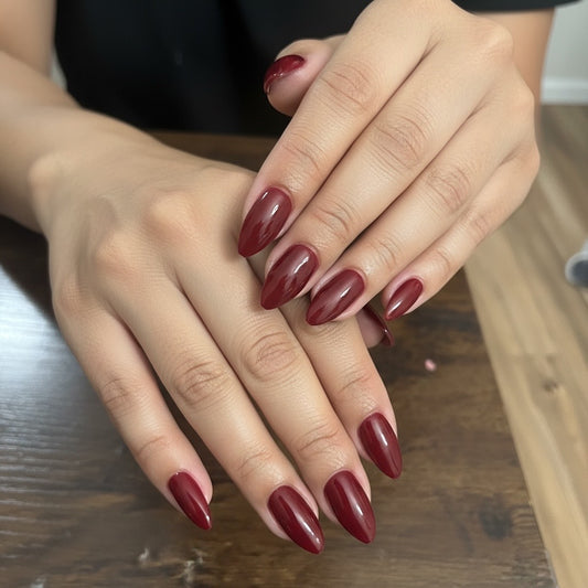 New! Kay Bei – Merlot Muse | Almond Press-On Nails