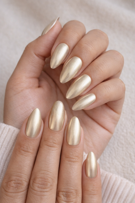 New! Kay Bei Soft Gold Almond Press-On Nails | Subtle Metallic Shimmer (10-Piece Set)