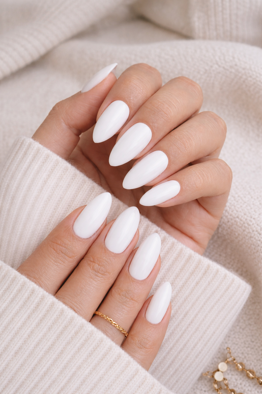 New! Kay Bei Classic White Almond Press-On Nails | Minimal & Clean (10-Piece Set)