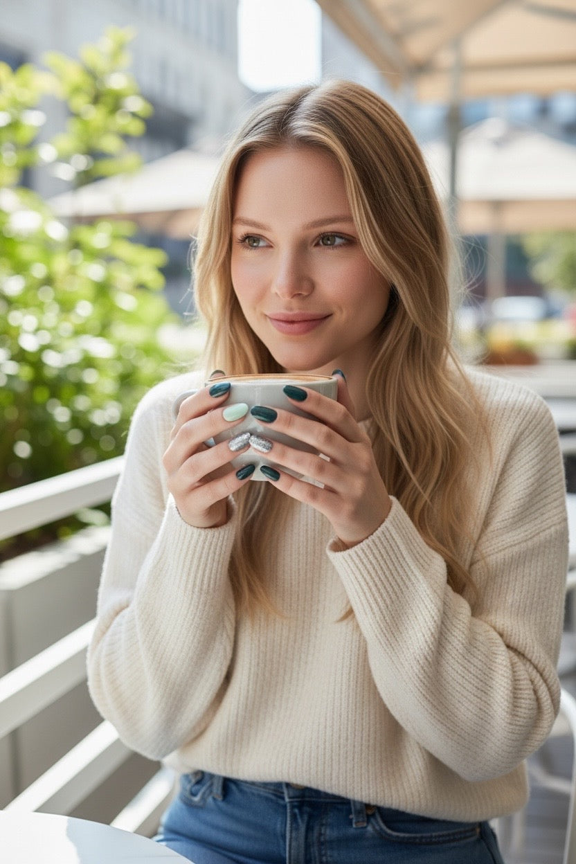 This Kay Bei Color Architect set pairs deep emerald, soft mint, and a refined silver accent to create a balanced, wearable glam look. The palette is intentionally curated for everyday elegance: bold enough to stand out, clean enough for work, dinners, and special occasions.